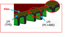 금형 안에서 필름 삽입 사출과 이종 재료 접합을 구성